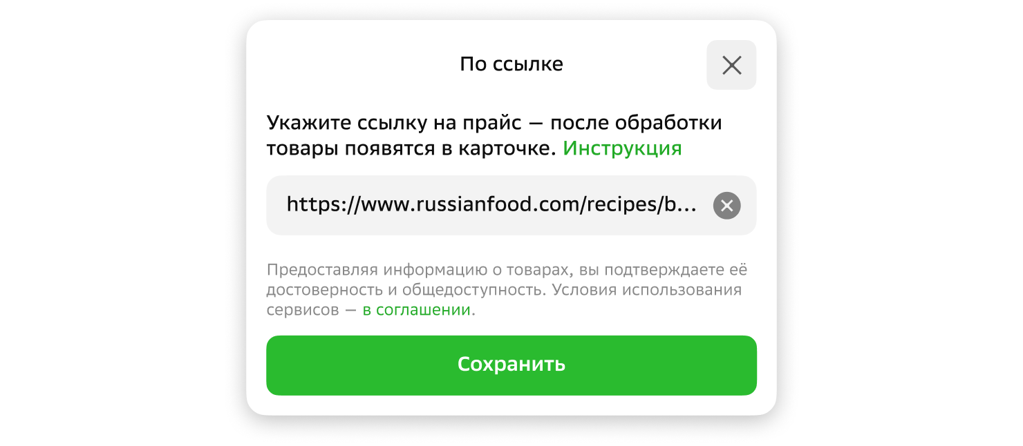 Загрузка товаров и услуг по ссылке