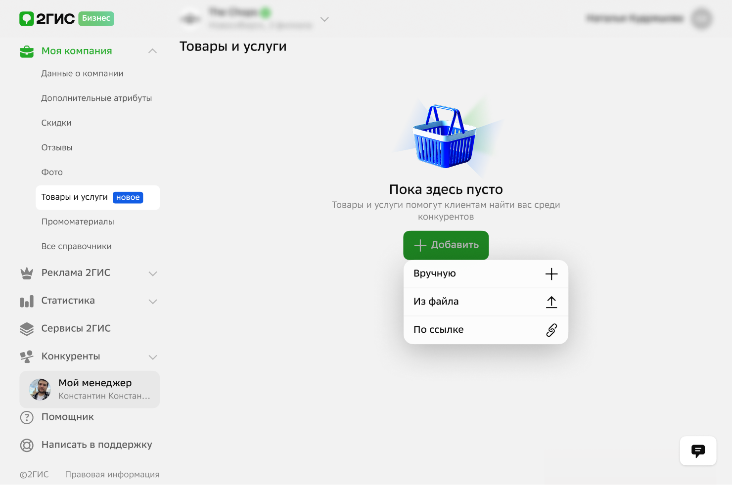 Как добавить свои товары и цены в 2ГИС